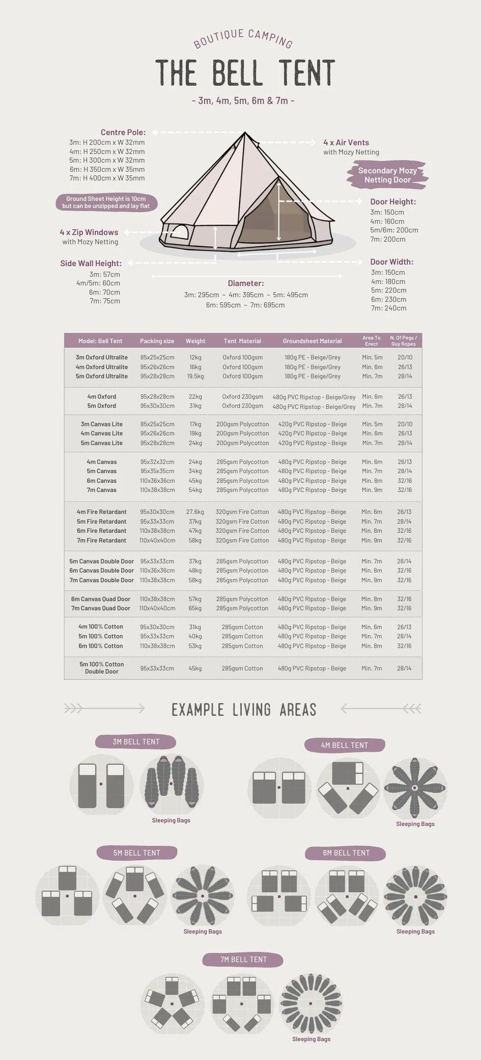 Although simplistic, I boast several unique traits that any practical camper will be sure to appreciate; extra tall door height (5m+), mesh doors/windows, zippable groundsheet, internal pockets, a centre pole that beautifully hangs a chandelier or inner-tent & much more!