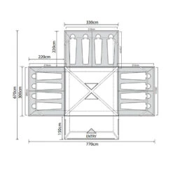 A vast yet lightweight and compact hybrid group and family air tent which represents incredible value for money. The frame of this twelve berth podded style tent is made up of both a welded central inflatable tube and 4 fibreglass poles, a hybrid which ensures both high performance and superb stability at a fantastic price point. We have afforded an ideal allocation of usable space for families and groups in this design, split between a generous commune area, and three darkened ‘Twilight’ 4-person bedrooms that can be split down to a 2/2 configured using the toggle in divider. Our bedroom ventilation system, a front mesh ventilation fly screen panel and crystal-clear window panels maintain an airy internal space and maximise airflow in warmer temperatures. There is an option to add a further Sun Canopy to the front of this tent to offer an ideal shaded area for relaxation, cooking, or dining. Outdoor Revolution understand that comfort has become a prerequisite for the modernized camper, which this tent comes complete with a Dura-tread Carpet and a Footprint Groundsheet, adding to the already outstanding value of this family tent. • 120HDE high density all weather lightweight fabric