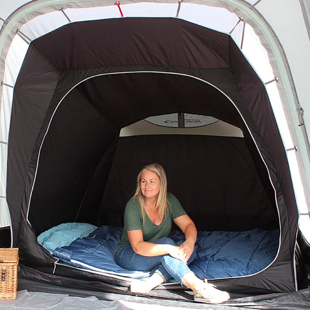The Cayman Annexe is a must-have for owners of the Cayman Air & Cayman F/G. It zips simply onto the rear of both models providing a tall sleeping extension complete with a darkened ‘Twilight’ micro-polyester 2-berth sleeping pod. Pitched simply using one robust yet lightweight fibreglass pole, this annexe is designed to sleep up to 2 adults, a double air bed, or 3 children. There is an internal sewn-in groundsheet, which means the inner tent can be removed to allow the annexe to be used as additional storage or living space should you wish. • 120HDE high density all-weather lightweight fabric