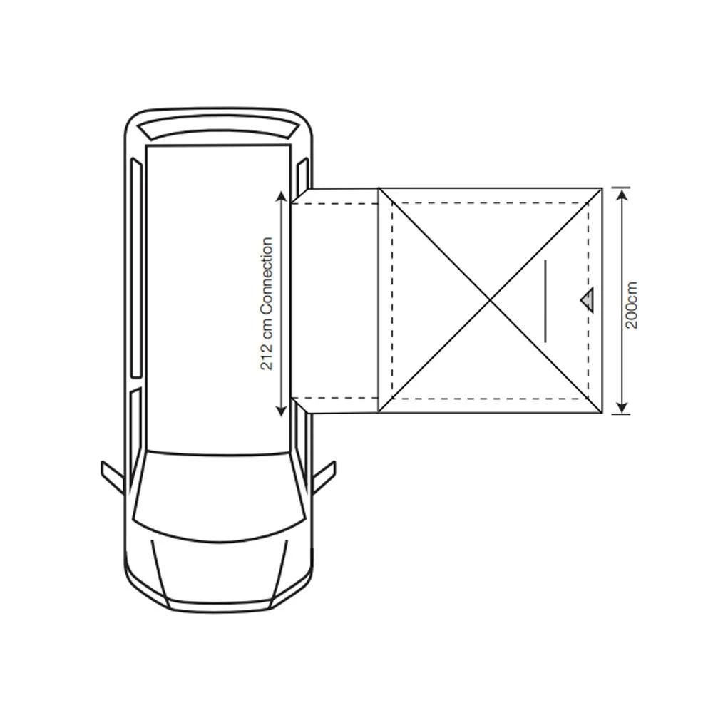This bestselling lightweight pole-and-sleeve driveaway awning functions as a compact multi-purpose utility tent, which can be fixed alongside a campervan or motorhome and carries freestanding capabilities. A perfect addition to any touring arrangement, granting an indispensable extension of usable space, making it perfect for use as a dining, cooking, relaxation, storage, pets, toilet or shower area. Now available in 2 ergonomic cowl sizes to fit a vehicle rail height of up to 255cm, the Outhouse Handi is very simple to pitch using just 2 robust fibreglass poles. We have introduced crystal clear window panels and mesh ventilation points on both sides of the awning to maintain an airy internal space, and a separate peg-down groundsheet giving the option to remove if desired. Exterior zip-down storm covers help to ensure maximum protection against the elements throughout adverse weather conditions, whist roof ventilation points ensure airflow is maintained to reduce condensation. A stylish front canopy can be created using optional canopy poles (available separately), and the internal area can be illuminated in the evening using our optional Lumi-Link lighting system which velcros simply into place. Fixing Height 180cm – 210cm (Low) • 120HDE high density all-weather lightweight fabric