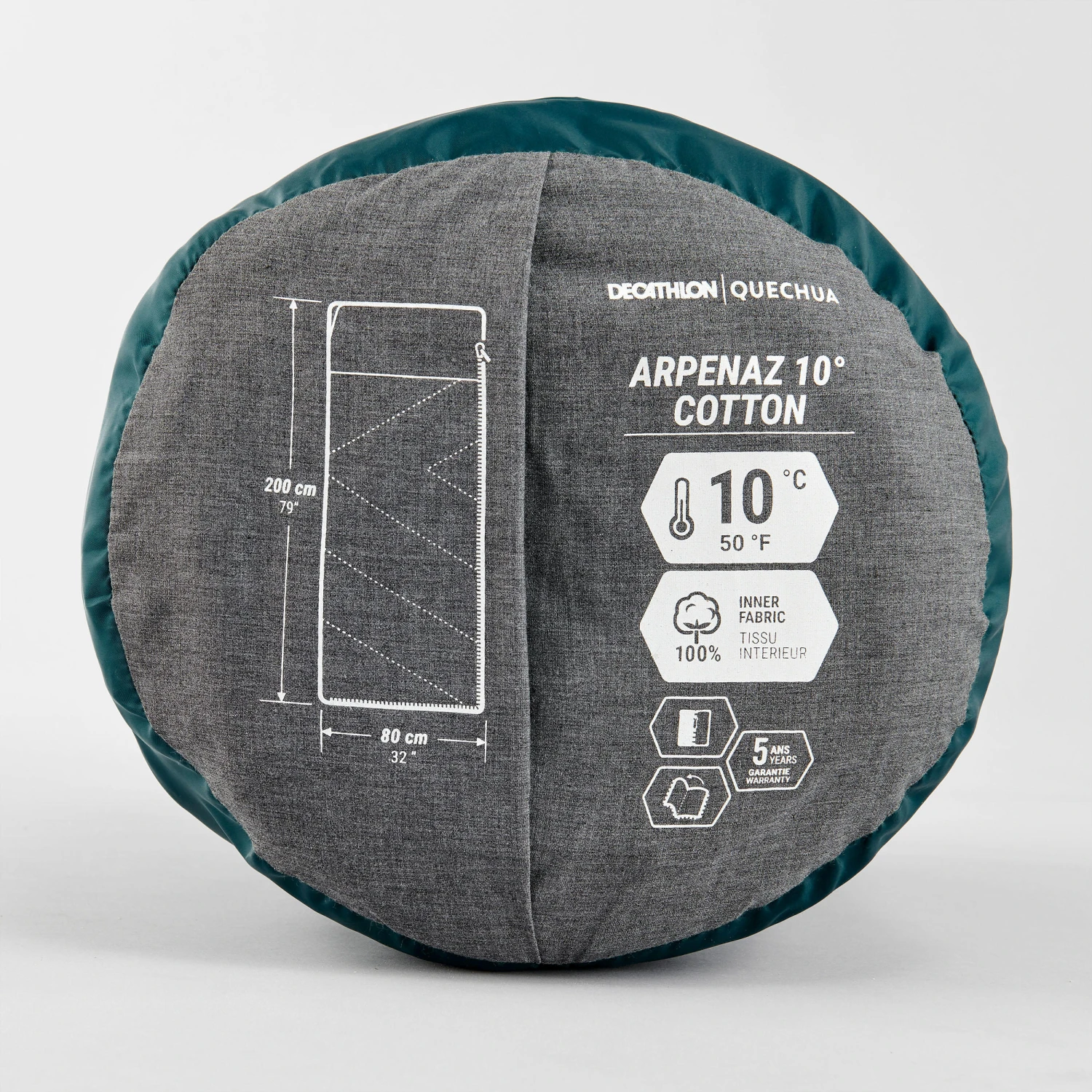 Our camping designers have developed this Arpenaz 10° cotton sleeping bag for comfortable sleep when camping in temperatures of around 10°C.A comfortable sleeping bag with an extremely pleasant cotton feel. It is two metres long and can be converted into a duvet. It comes with a five-year warranty.