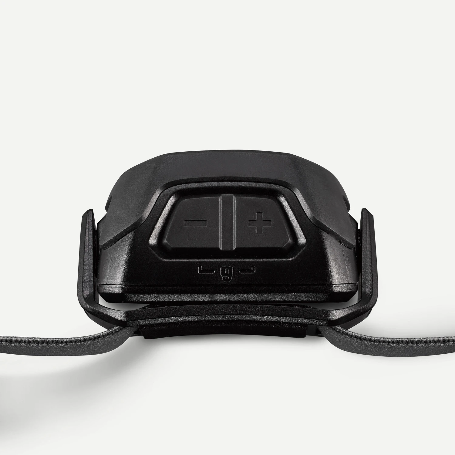 The FORCLAZ HL500 USB head torch has a wide beam that uniformly diffuses light so you can see in front of you and to the sides.