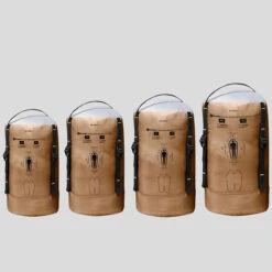 Size L: 1670 g, user from 1.70m to 1.84m tall. Bag dim.: L 42 cm Ø 21.5 cm. Volume 15.2 litres. Size XL: 1790 g, user from 1.85m to 2m tall. Bag dim.: L 42 cm Ø 22.5 cm. Volume 16,7 L. Volume & dimensions may vary according to the compression applied to the product.