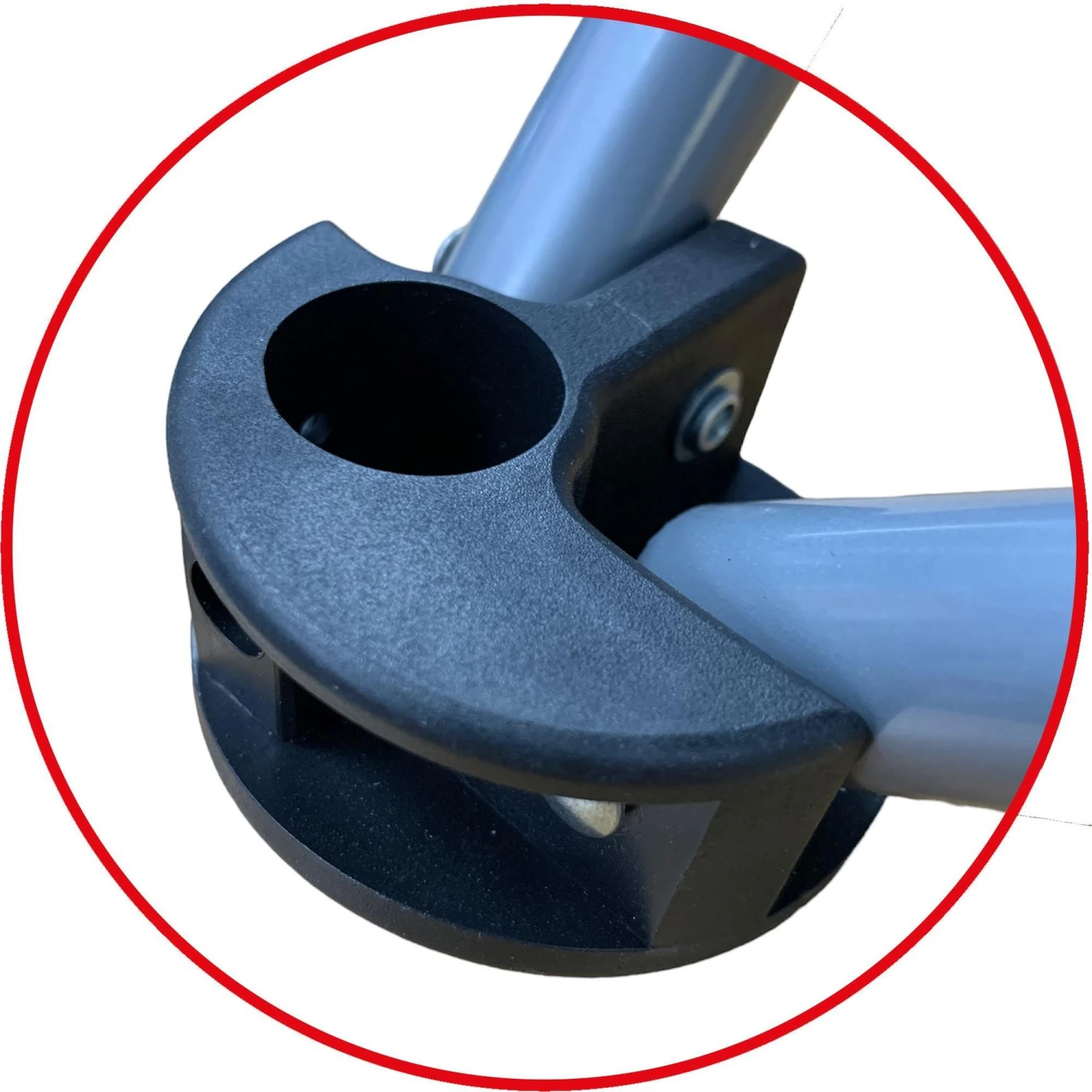 MATERIAL CONSTRUCTION – Material constructed from double thickness 600D polyester fabric with fire retardant, quick dry padding, reinforced stitching on every tension point, industry leading frame diameter of 19mm, LBH for even weight distribution and Large feet for better stability.